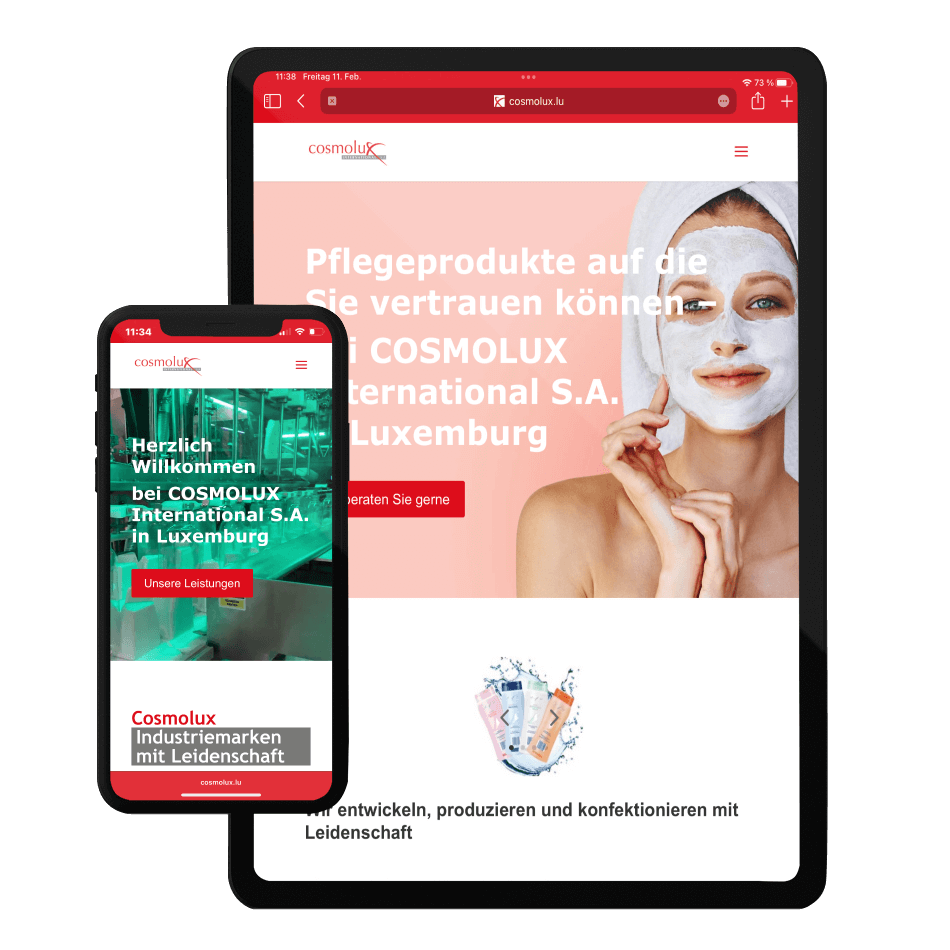 La nueva página web de COSMOLUX tiene como objetivo informar de manera detallada a los clientes potenciales (empresas del sector de la cosmética y el cuidado corporal) y usuarios sobre los elevados estándares de calidad y seguridad de sus productos. Además, también se optimizó la búsqueda en Google y se mejoró el posicionamiento.