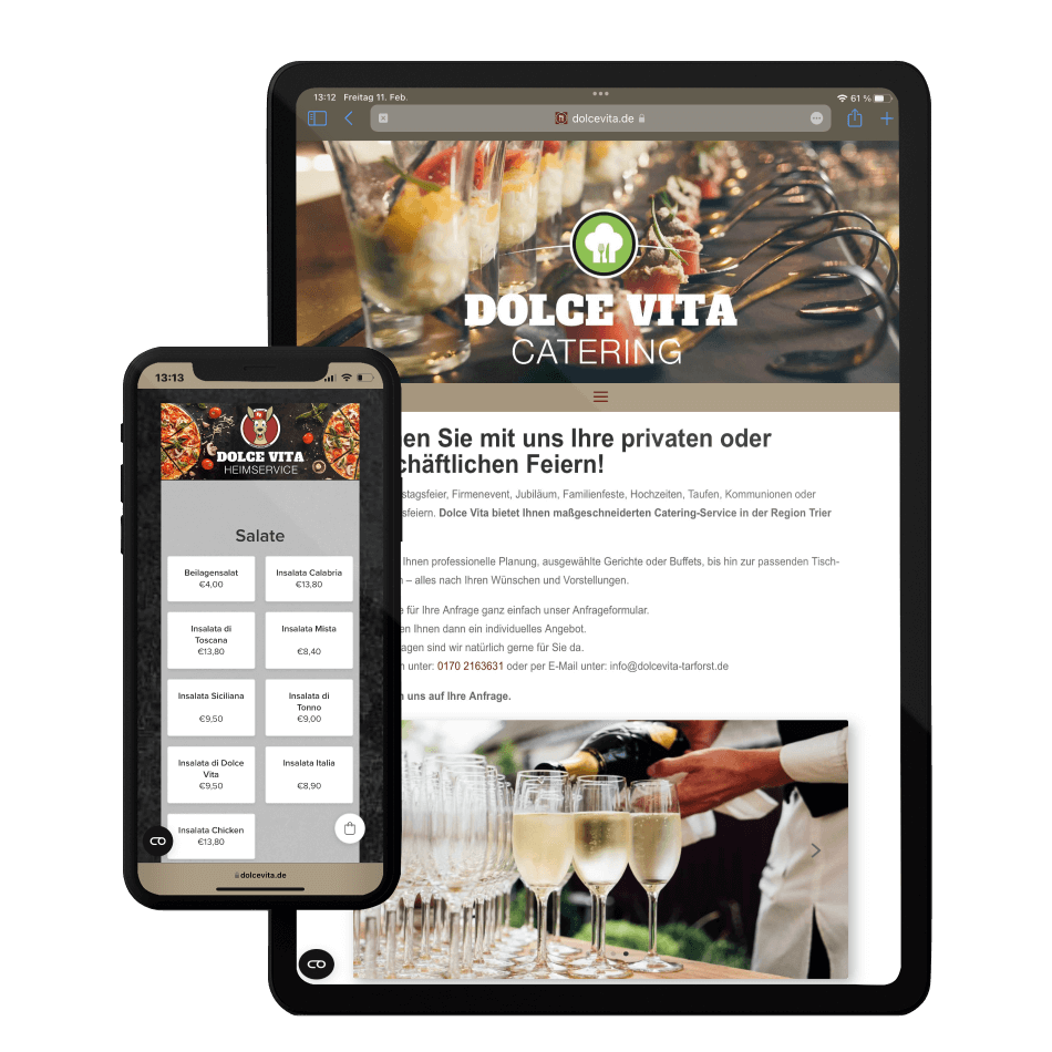 La nueva página web de DOLCE VITA tiene como objetivo dirigirse de manera individual a su público objetivo: restaurantes, servicio a domicilio y catering. Además, se optimizó la búsqueda en Google y se mejoró el posicionamiento.